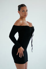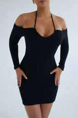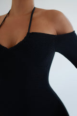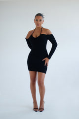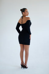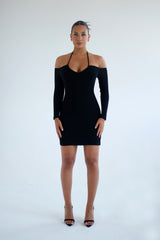 Textured Sia Multiway Mini Black Dress